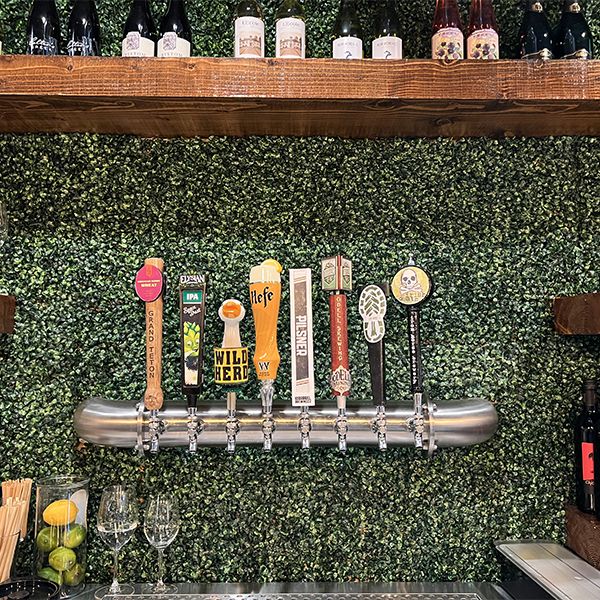 Located in our dining room, with a view of the kitchen, the banquettes stand 5.5 feet tall, offering a bit of privacy, and 17.5 feet long, leaving plenty of space for your whole party.